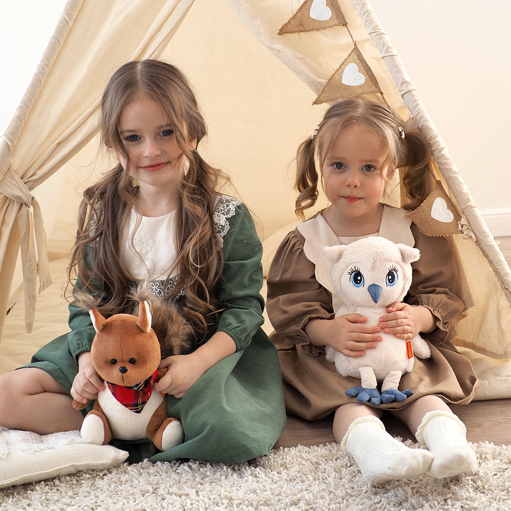 Meet your child’s new favourite cuddle buddy - our Plush Owl Soft Toy! With its luxuriously soft fur, adorable big blue eyes, and premium-quality stitching, this charming owl is made for endless snuggles and smiles. Its gentle cream and grey tones add a touch of magic to any nursery or playroom. Bring home this lovable friend and watch your little one’s imagination soar with joy and comfort!
