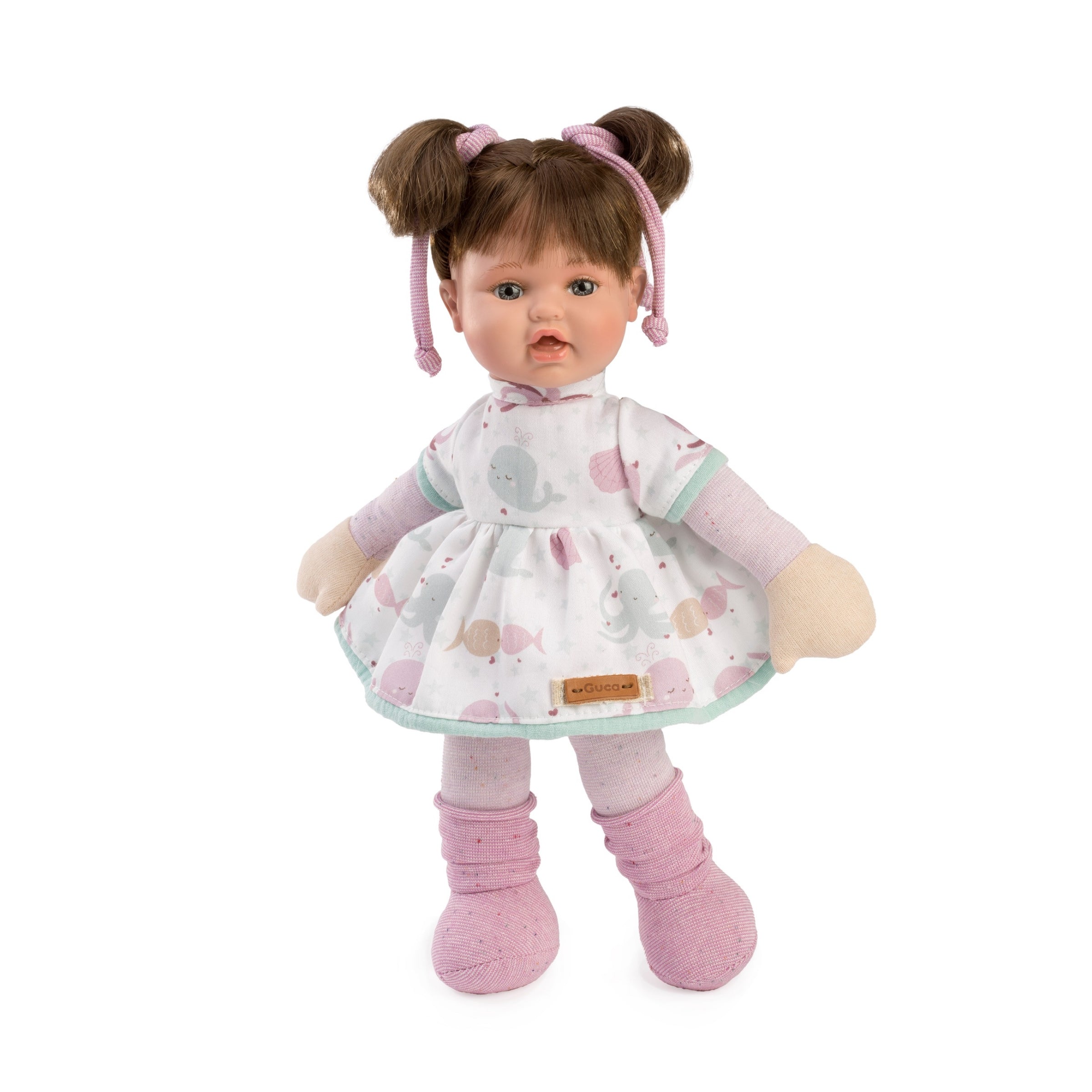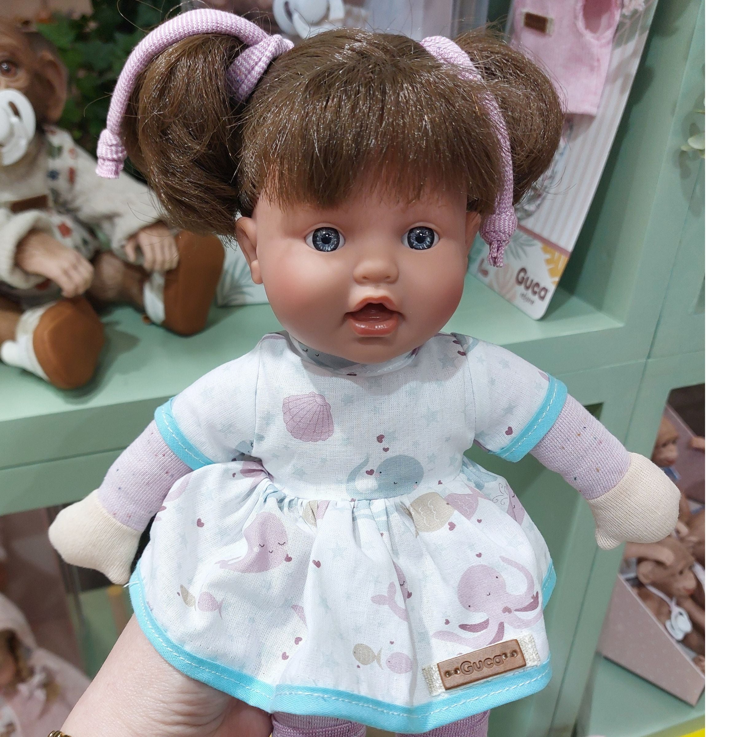 This sweet cloth doll is made for gentle cuddles and first friendships. With a soft, huggable body and a beautifully detailed vinyl head, it feels wonderfully lifelike while staying perfectly comforting for young children. Handmade in Spain to a high standard, her delicate outfit and soft pink tones give her a timeless, caring charm. Measuring 36 cm, she’s just right for small hands to carry everywhere. A lovely first doll that brings warmth, quality and a sense of calm to playtime.