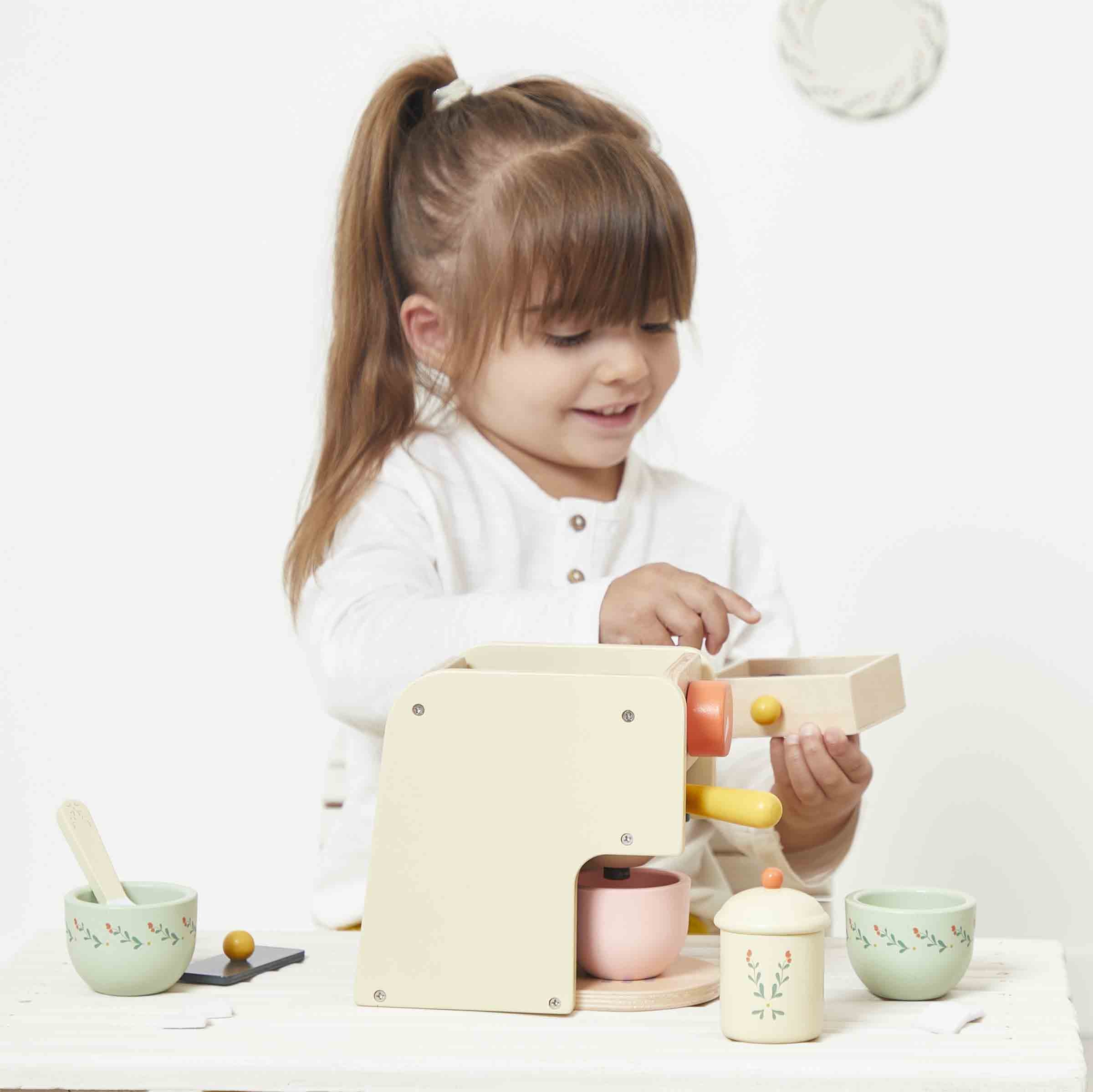 Perfect for imaginative play, this wooden coffee machine helps develop fine motor skills, creativity, and confidence as little ones imitate grown-up gestures in a fun and meaningful way.