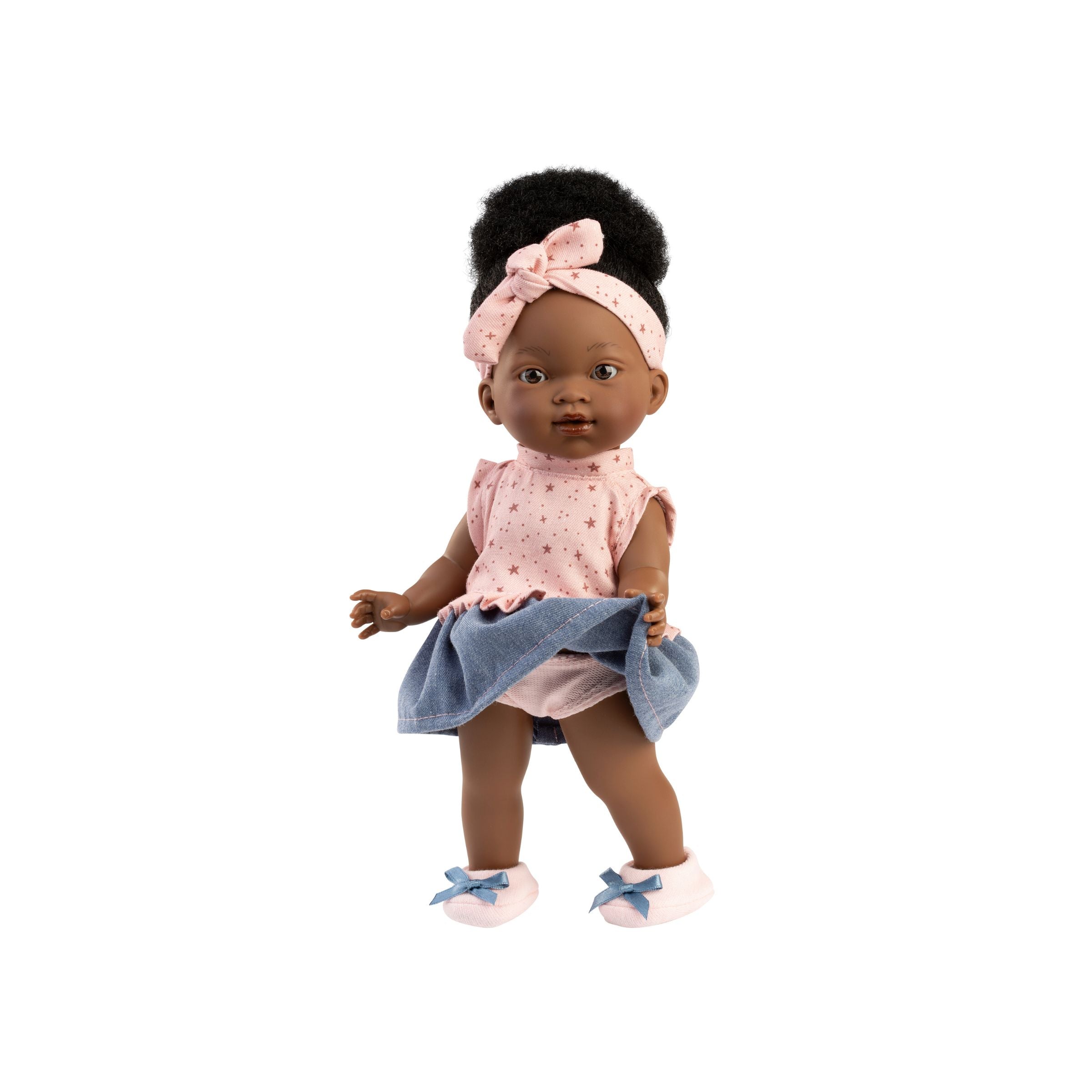 Meet Zoe, a delightful Llorens doll full of charm and personality. Her beautiful curly hair is styled with a soft pink bow, perfectly matching her sweet outfit - a pink star-print top paired with a denim skirt and tiny bow shoes. Handmade in Spain from premium vinyl, Zoe is crafted with the care and tradition Llorens is loved for. A wonderful companion for imaginative play, she’s designed to inspire kindness, creativity, and joy.